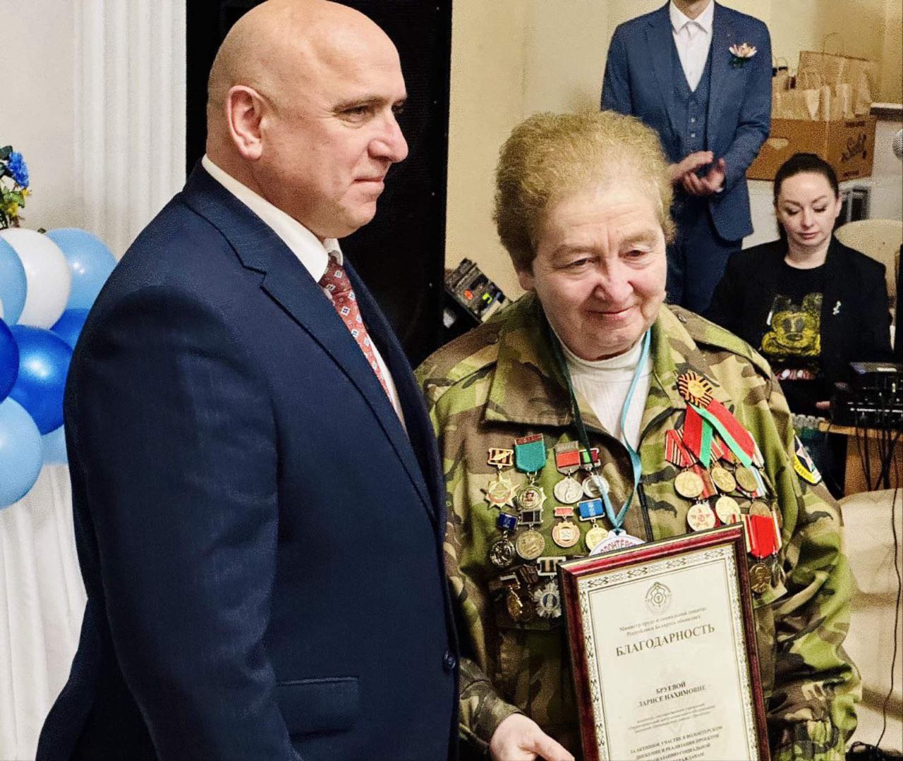 Видеопоздравление от Министра труда и социальной защиты Республики Беларусь Наталии Павлюченко было адресовано участникам мероприятия, которая поблагодарила активистов за совместную работу, мудрость, поддержку.